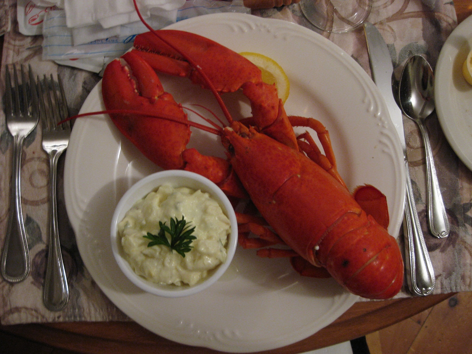 外で茹でてすぐに出されたロブスター 添乗員さんが軍手持参で剥いてくれました |